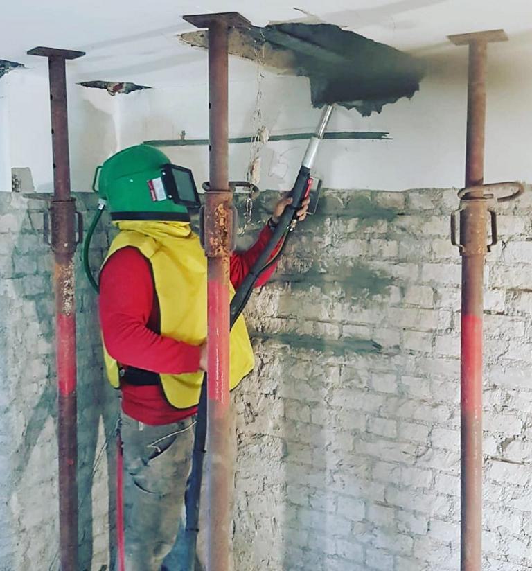 Wir sandstrahlen im Rotec-Verfahren. Ob drinnen oder draußen, in der Höhe oder in der Tiefe – mit unserem Sandstrahlgerät können wir geländeflexibel agieren. Mit Strahlgut je nach Bedarf erleichtert dies viele Sanierungsarbeiten. Hauptsächlich werden Stahlträger sandgestrahlt, die entweder im stark sanierungsbedürftigen Zustand vorab ausgebaut werden oder andernfalls in ihrer Position verbleiben und für das Sandstrahlen entsprechend freigelegt werden.
